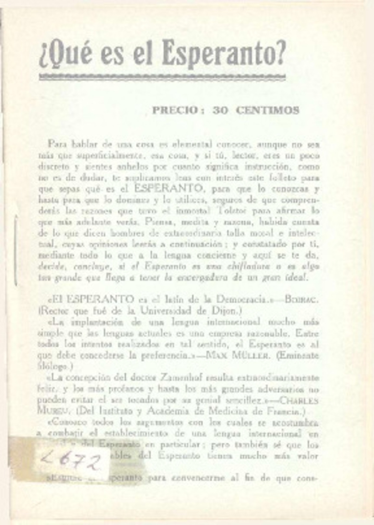 ¿Qué es el Esperanto? / Julio Mangada Rosenörn