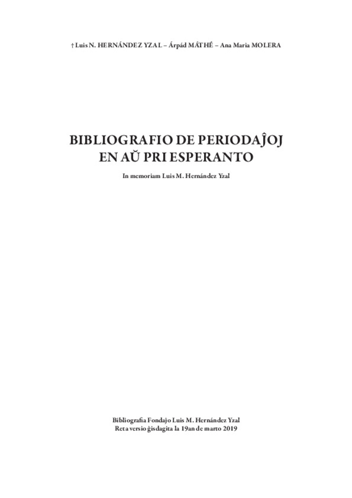 Bibliografio de periodaĵoj en aŭ pri Esperanto : in memoriam Luis M. Hernández Yzal / Luis M. Hernández Yzal, Árpád Máthé, Ana María Molera