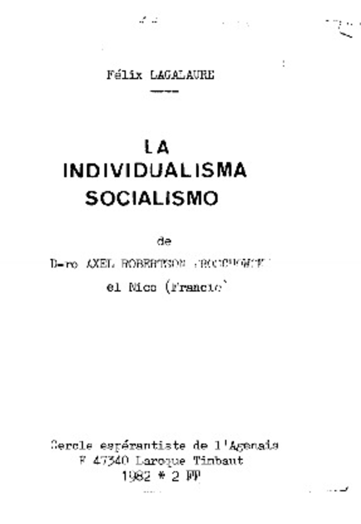 La individualisma socialismo de D-ro Axel Robertson Proschowsky el Nico (Francio) / Félix Lagalaure ; [tradukita de Liber]